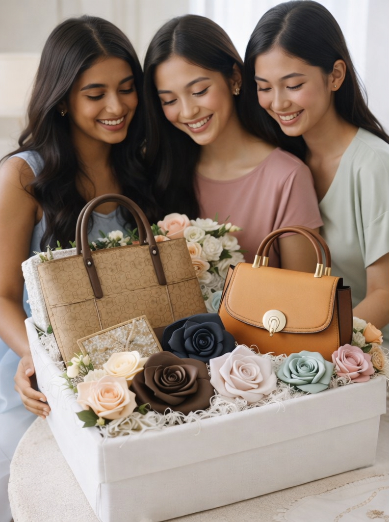 At Neelanjali Hampers, every gift is curated with care, intention, and emotion. Our premium gift hampers bring together elegant handbags, stylish clutches, and beautifully designed hair accessories to create a gifting experience that feels personal and memorable. Each piece is thoughtfully selected for its quality, style, and charm—making every hamper a graceful expression of love, celebration, and appreciation. Whether it’s a birthday, wedding, festive moment, or a simple gesture, our hampers are designed to leave a lasting impression.